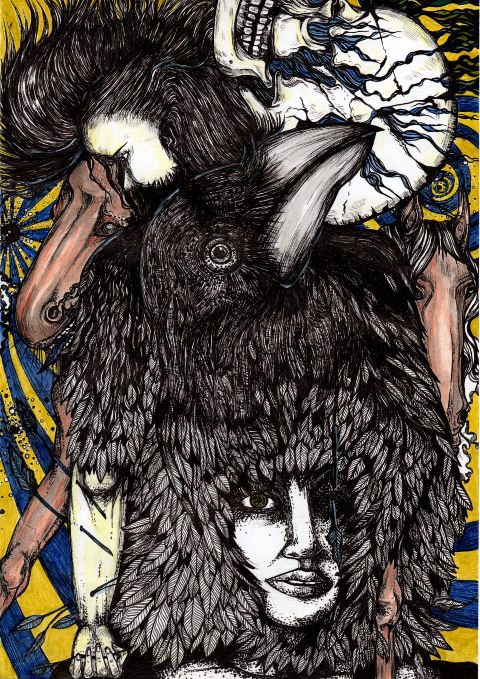 Fatima: Ich zeichne seit meinen Teenagerjahren gerne. Es gab allerdings keinen bestimmten Auslöser, wie z.B. die Kunstlehrerin oder die Eltern. Es ergab sich einfach so! Ich las immer viel und hörte Musik. So saß ich dann an meinem Schreibtisch und kritzelte vor mich hin. Eberswalde ist auch einfach langweilig! Da bleibt einem nichts anderes übrig. Während des Lesens stieß ich auf Werke von William Blake, Edgar Allen Poe oder später Emily Dickinson. Dann fing ich an, selbst Texte bzw. Gedichte zu verfassen und ein bisschen rumzuspinnen. Es war ein harmonischer Prozess ohne große äußere Einflüsse.
